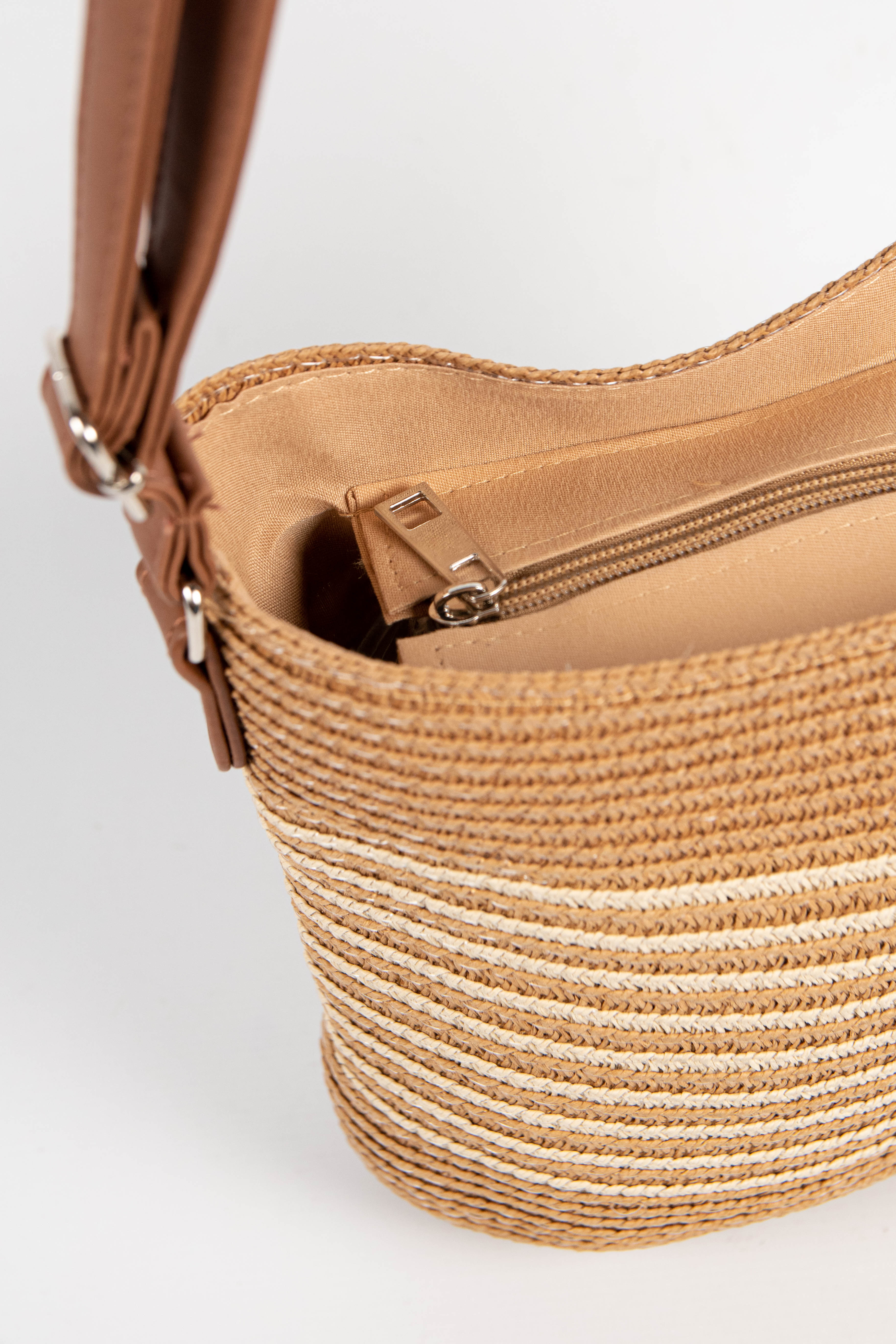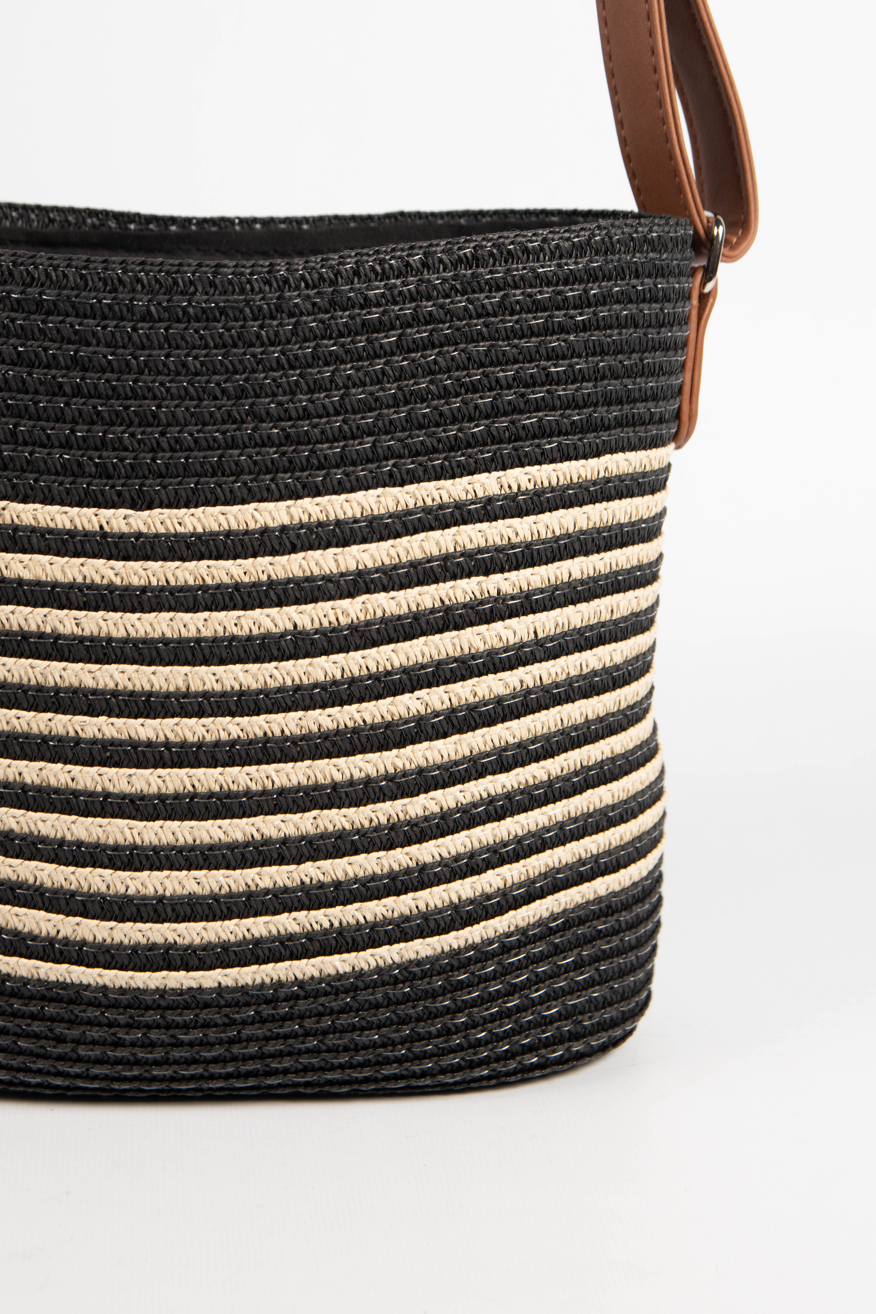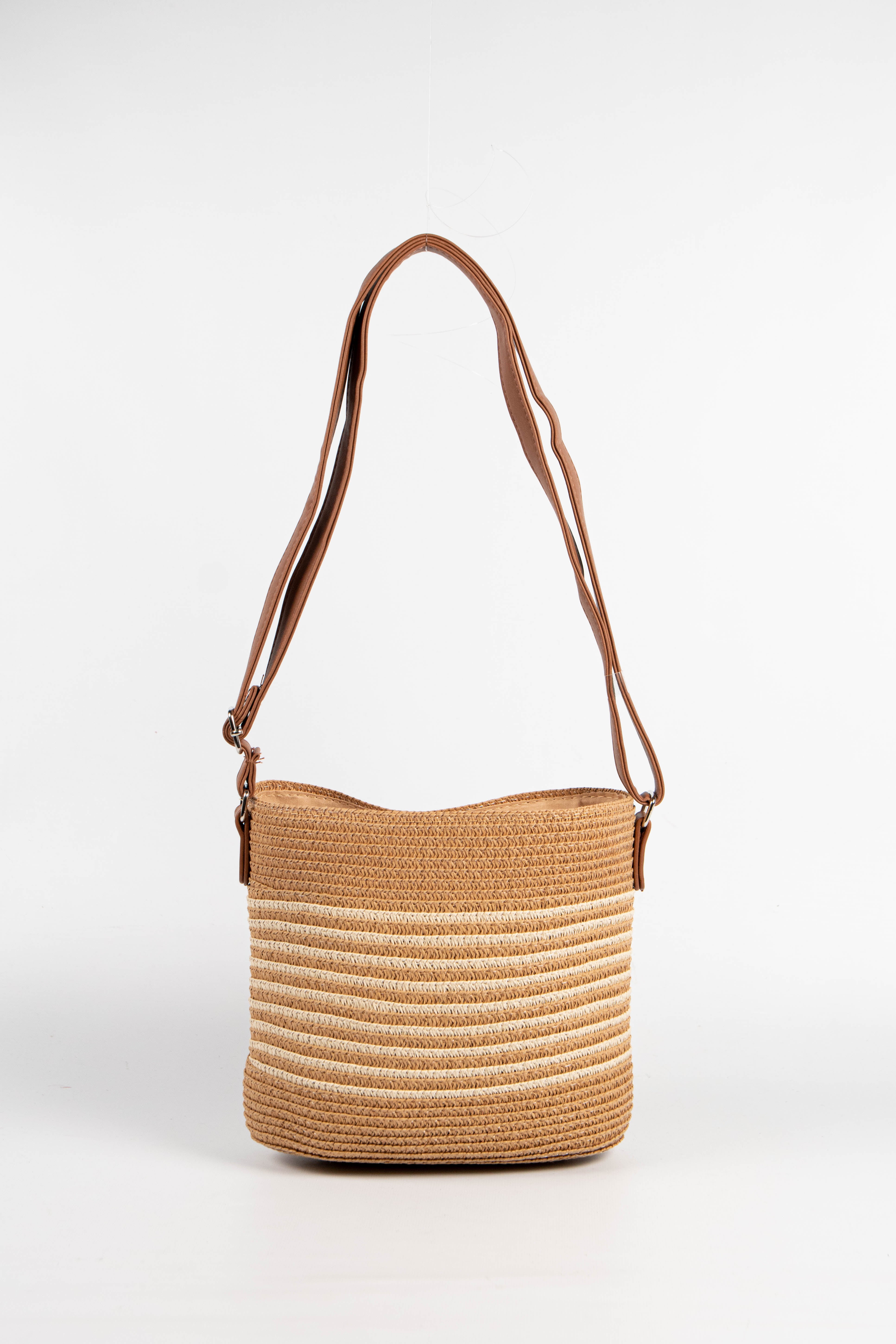 Contiene: mini bag de rafia con rayas en color.