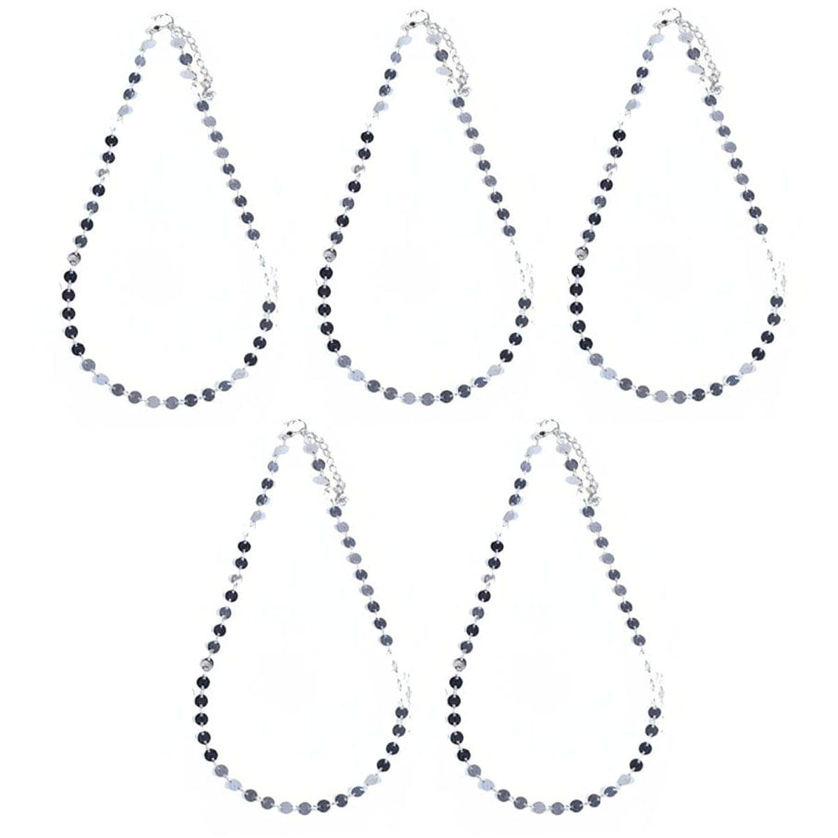 Contiene: cinco collares de fantasías plateados de un mismo modelo.