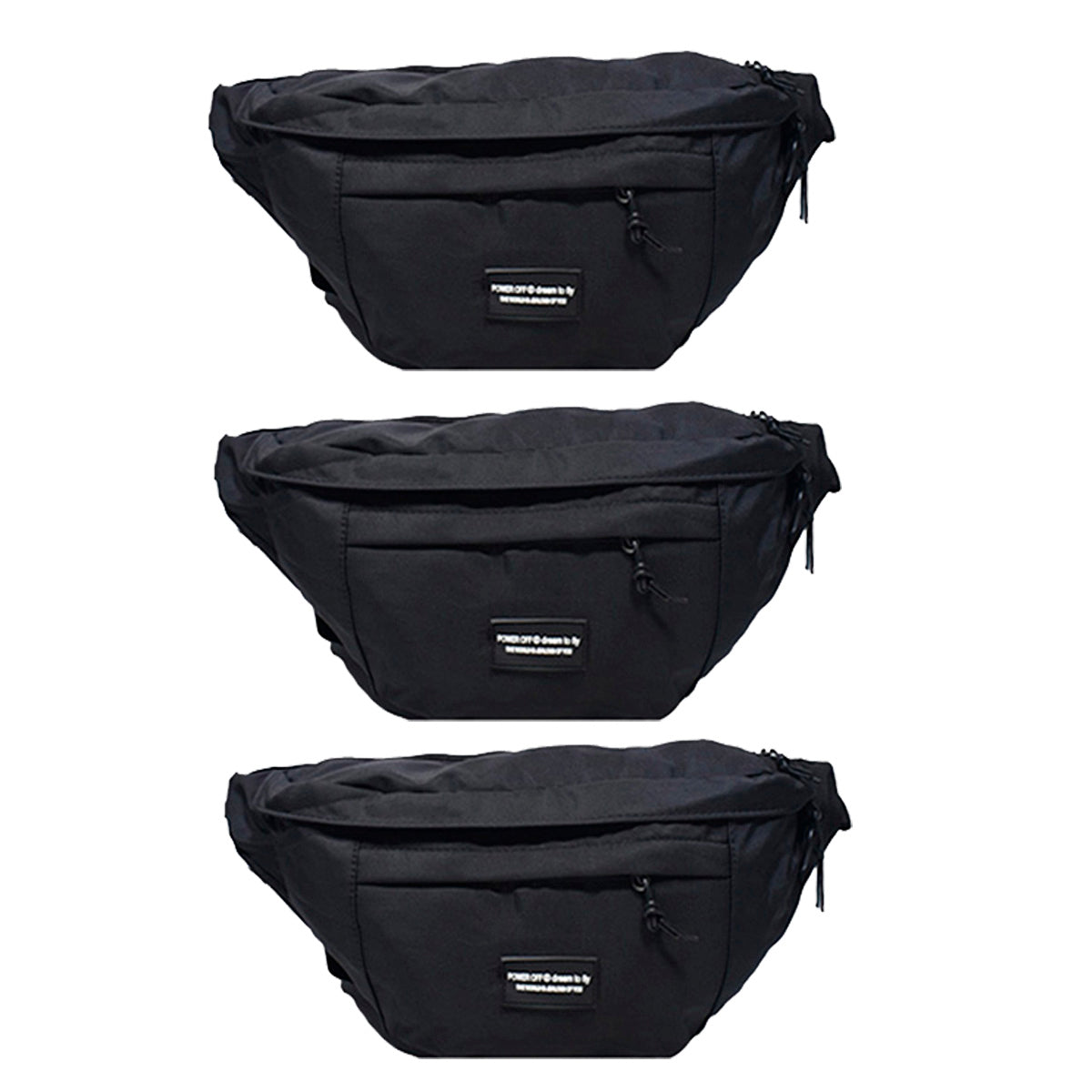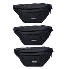 Contiene cinco  riñoneras grandes de un mismo modelo en color negro.
