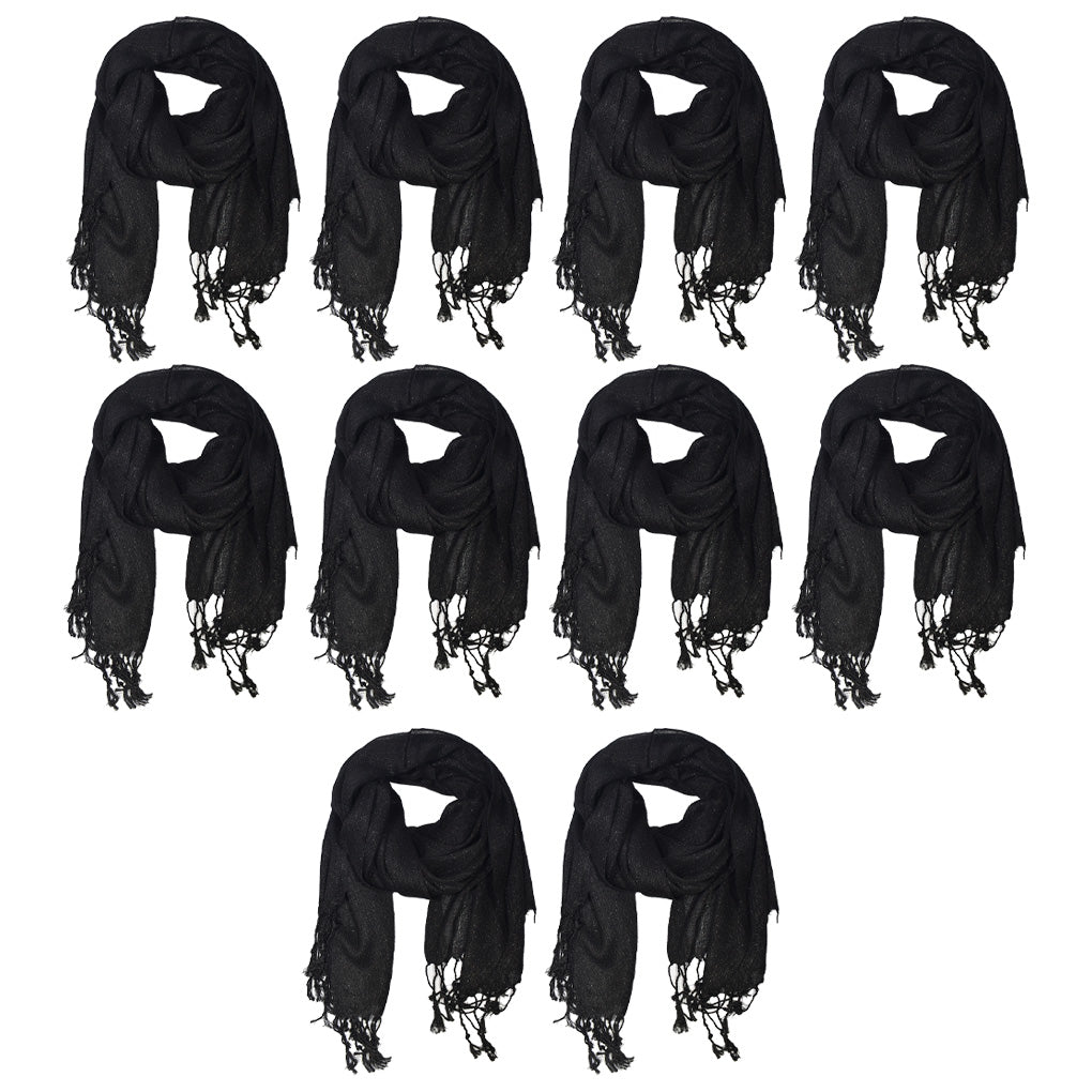 Contiene: 10 chales de fiesta con brillo de un mismo modelo color negro.