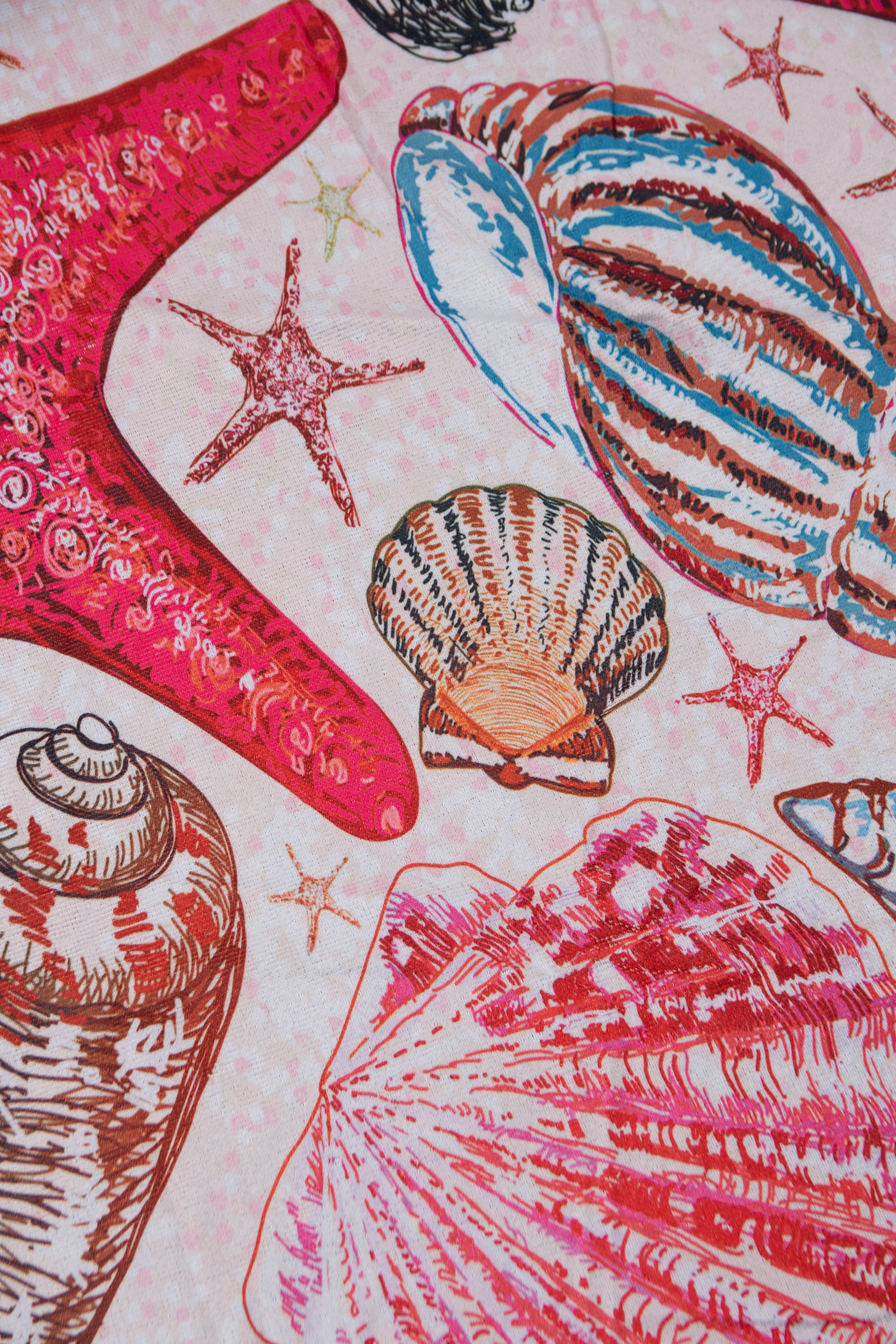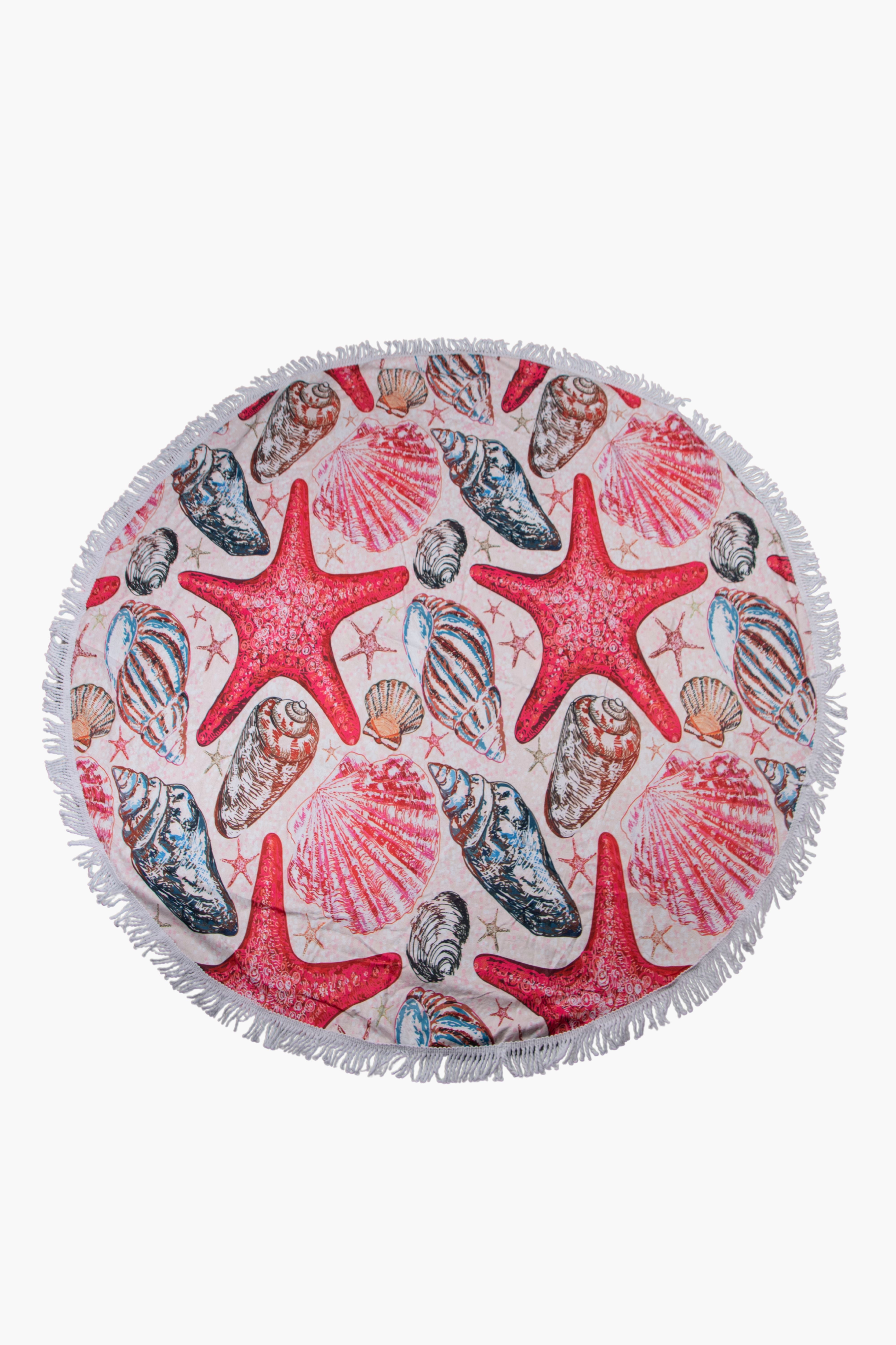 Contiene: una manta playera con diseño de estrellas de mar y flecos.