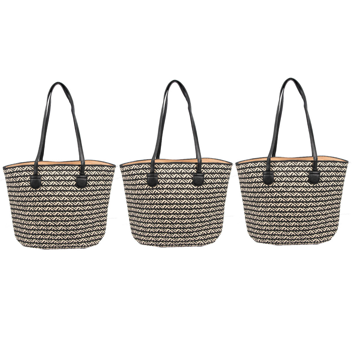 Contiene 3 bolsos de playa de un mismo modelo .