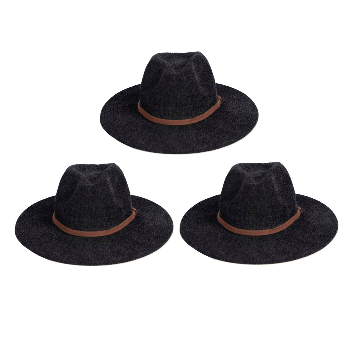 Contiene 3 capelinas de un mismo modelo en color negro .