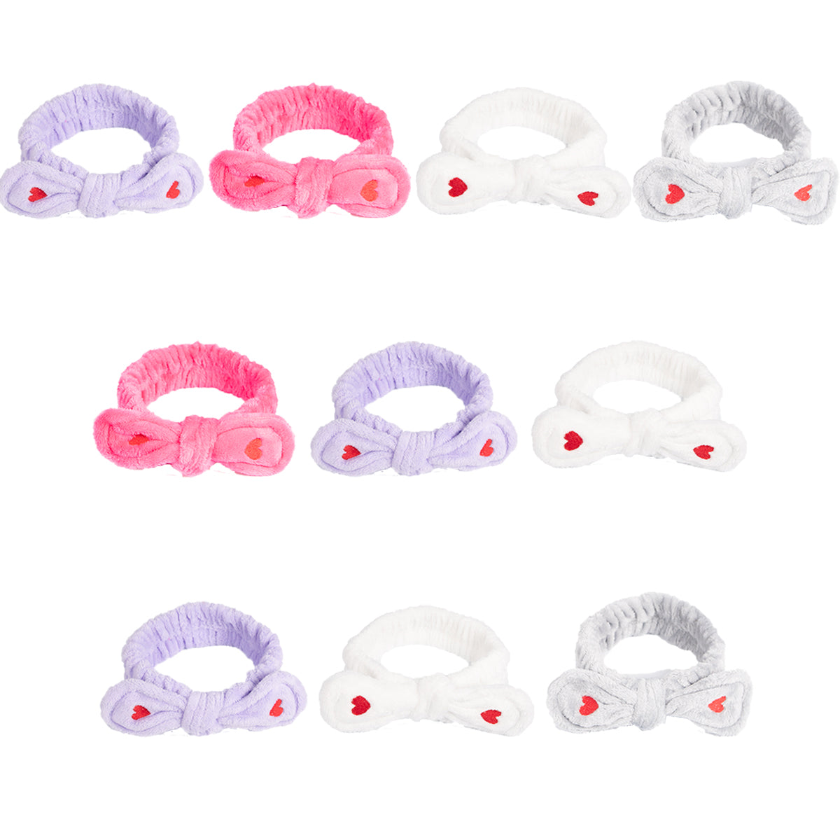 Contiene diez vinchas de maquillaje de un mismo modelo en diferentes colores.