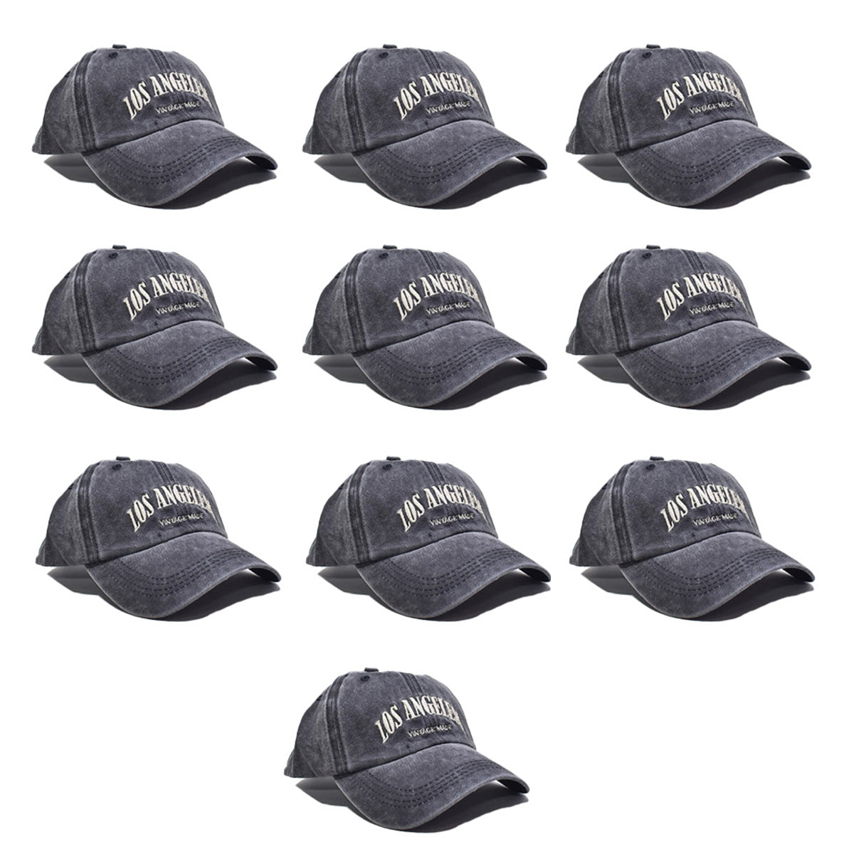 Contiene diez gorras gastadas y bordadas de un mismo modelo.