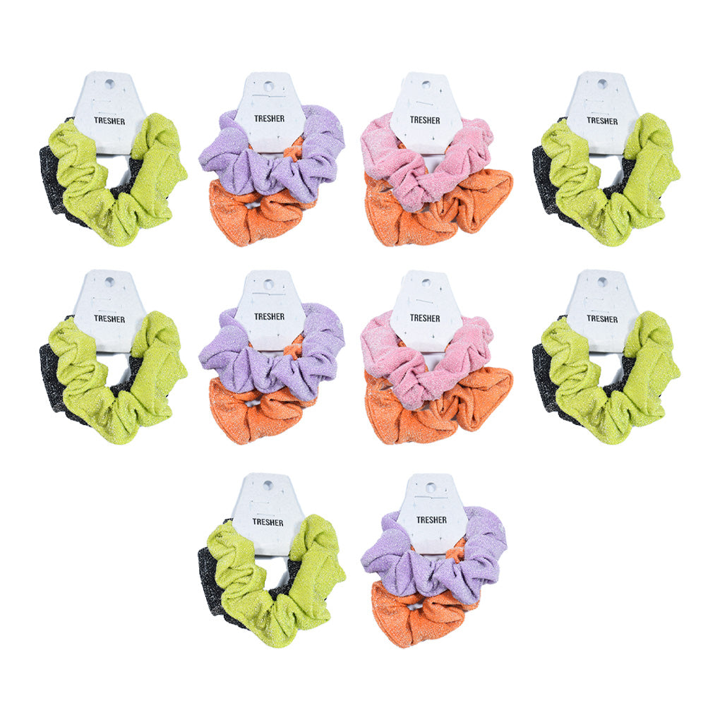 Contiene: 10 scrunchies de lurex de diferentes colores