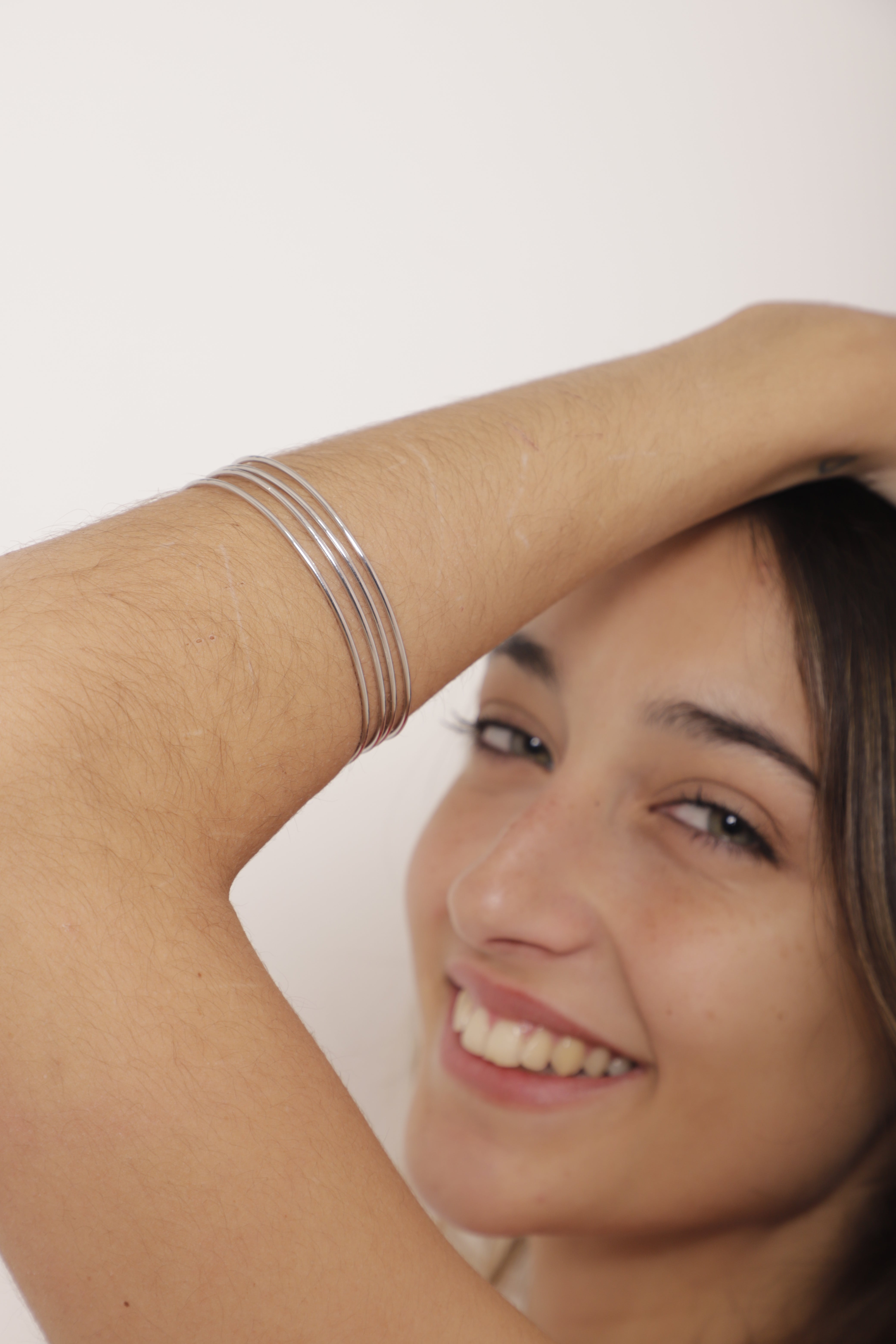 Contiene: 10 pulseras esclavas plateadas de diferentes modelos.