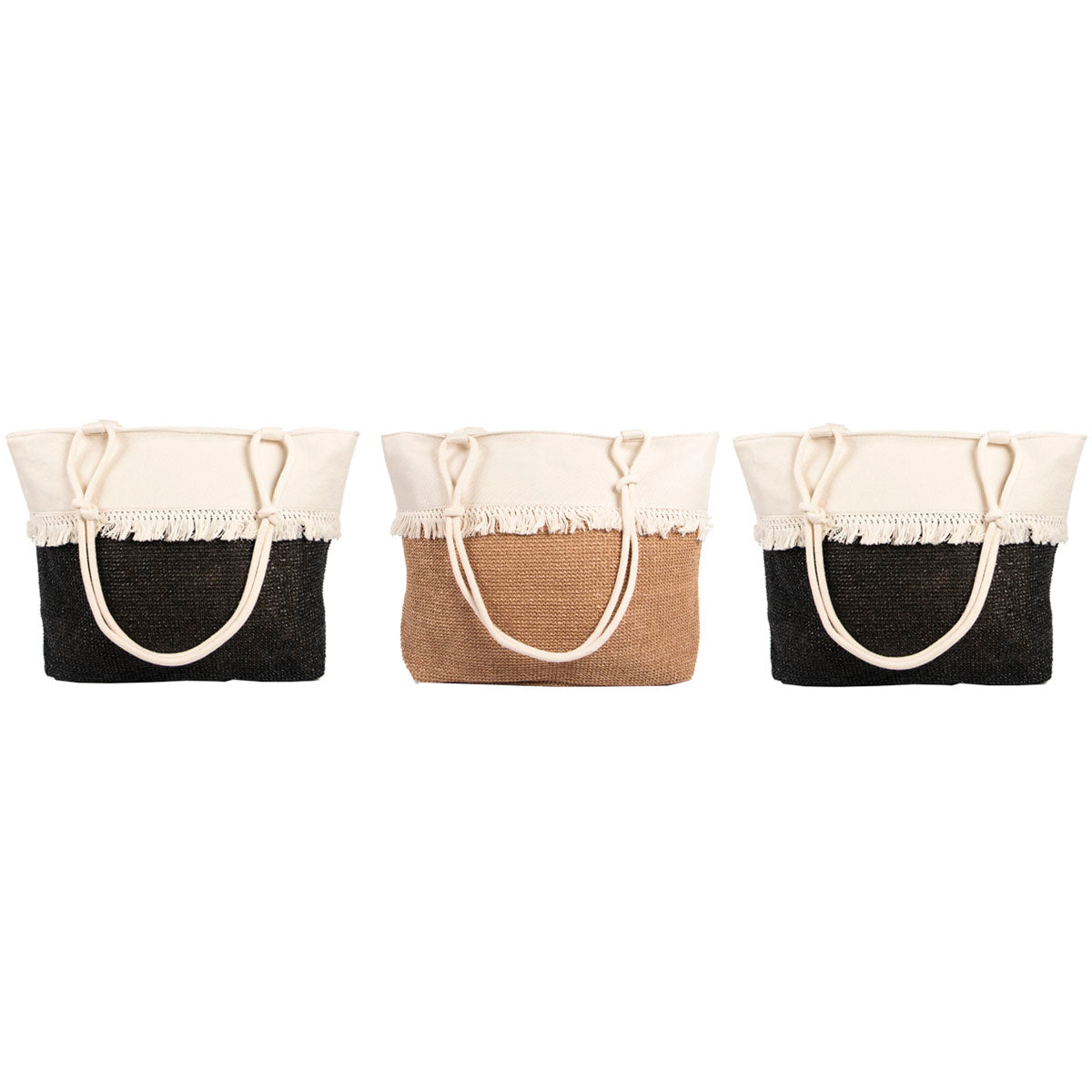 Contiene 3 bolsos de playa de un mismo modelo, en diferente colores.