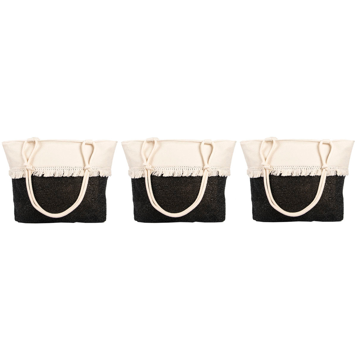 Contiene 3 bolsos playeros de un mismo modelo, en color negro