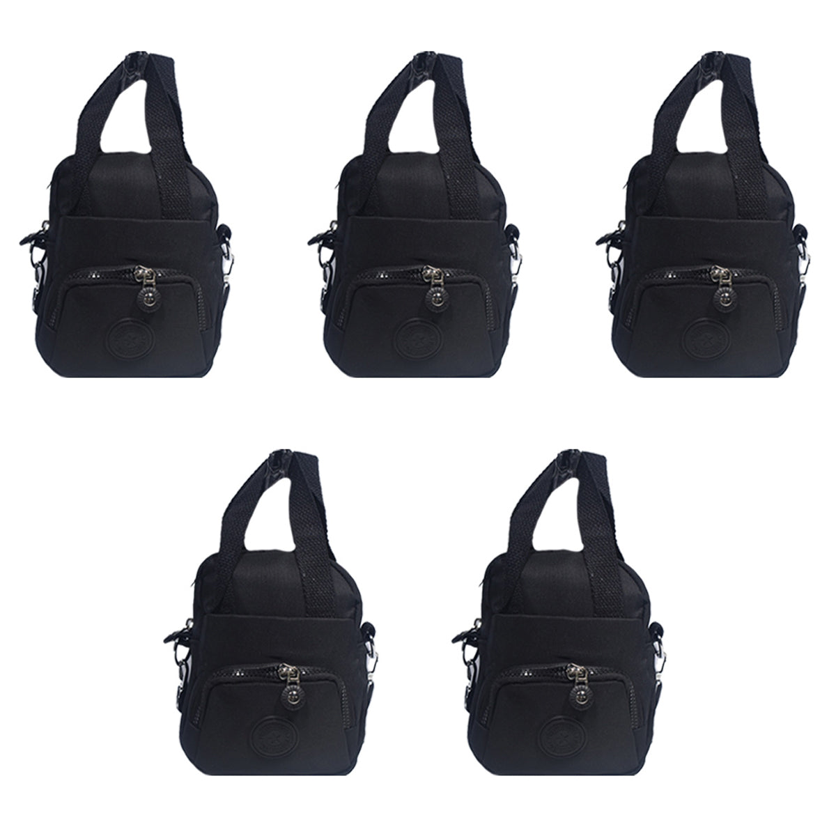 Contiene cinco bandoleras tela de avión de un mismo modelo en color negro.