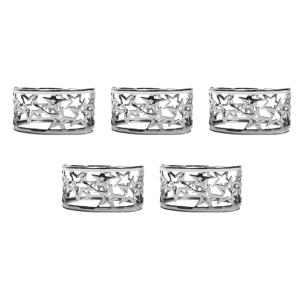 Contiene cinco brazaletes de un mismo modelo en plateado.