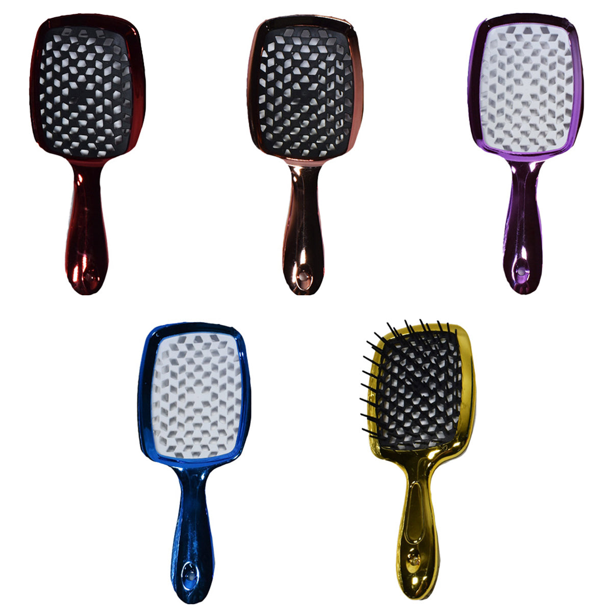 Contiene cinco cepillos de pelo de un mismo modelo en diferentes colores.