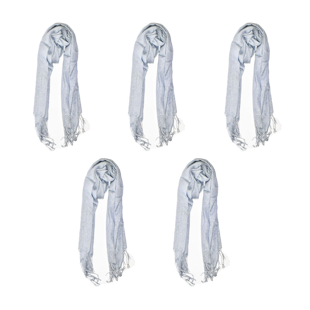 Contiene cinco chales de fiesta de un mismo modelo en un solo color.