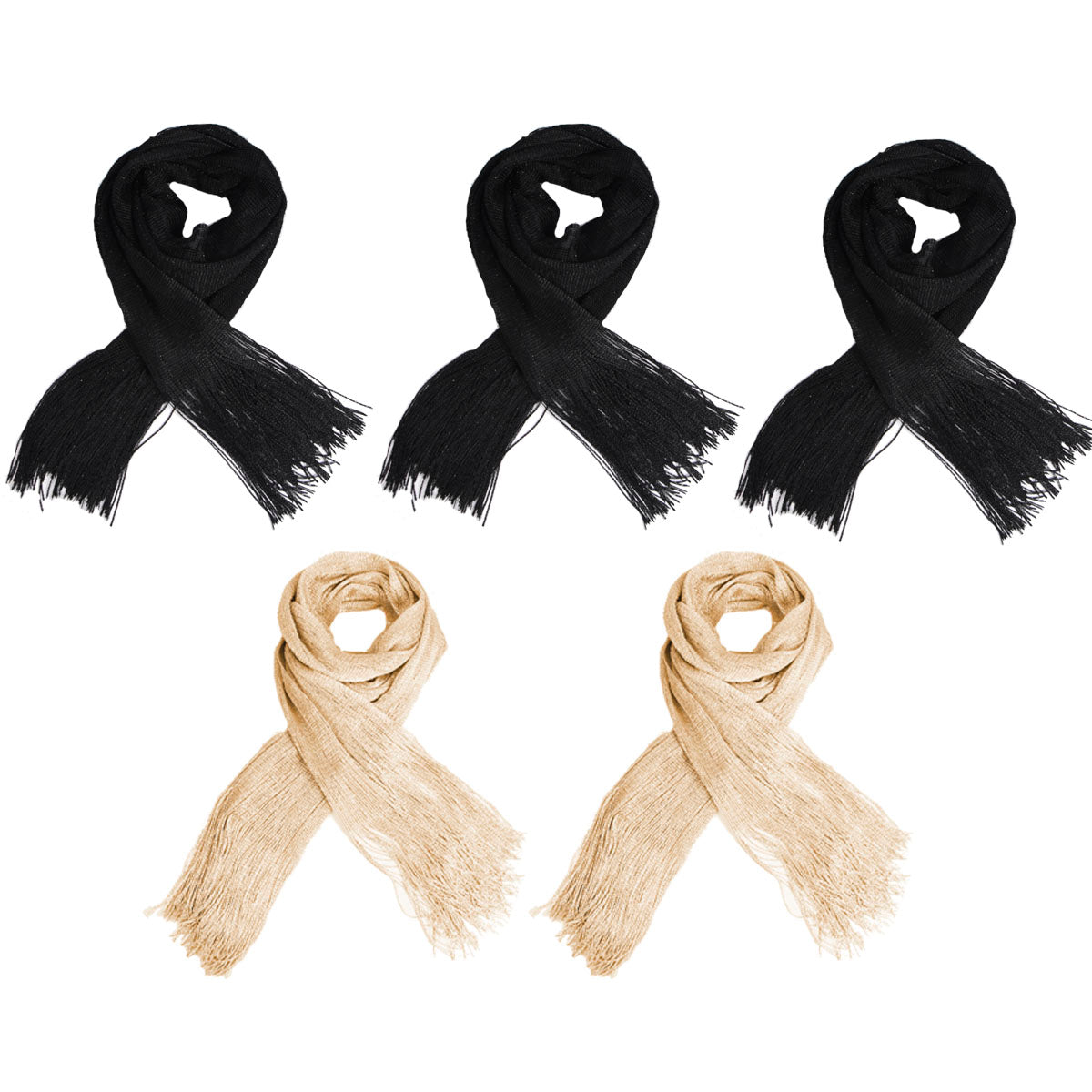 Contiene 5 chales en negro y dorado