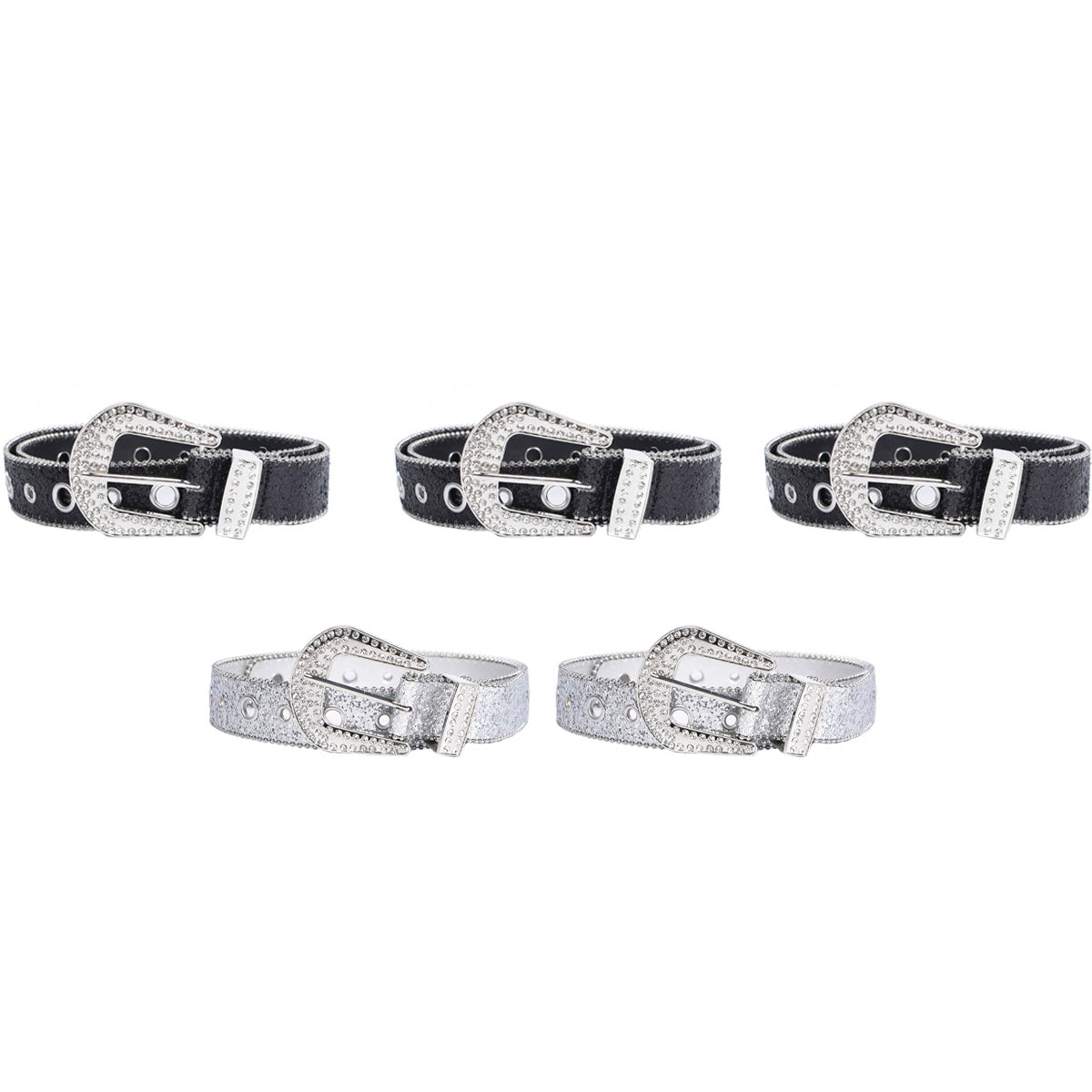 Contiene cinco cinturones con brillos de un mismo modelo.