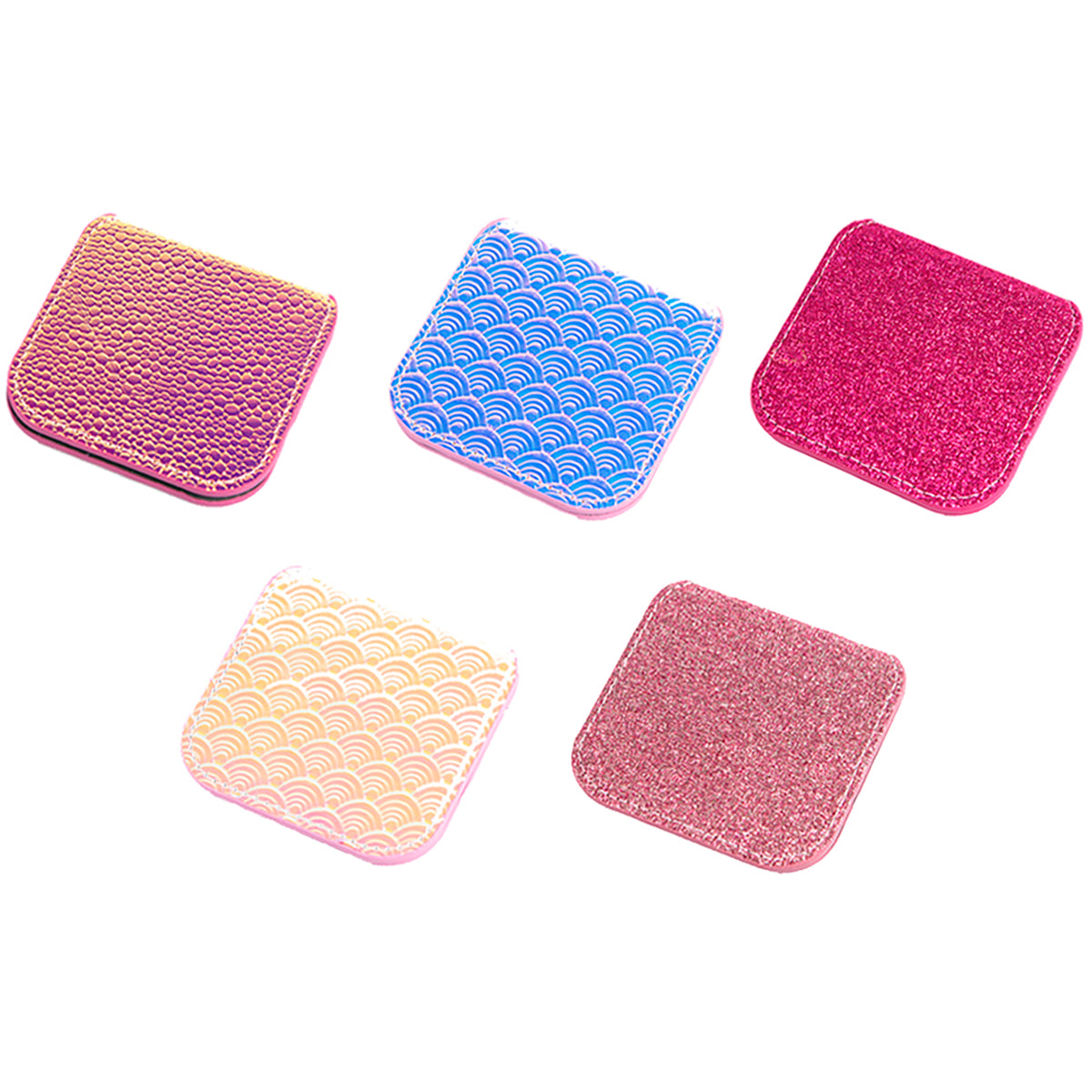 Contiene cinco espejos de un mismo modelo en diferentes colores.