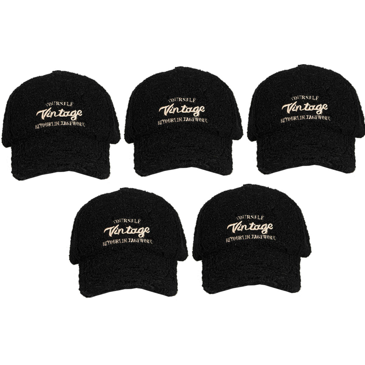Contiene cinco gorras de piel de un mismo modelo en color negro.