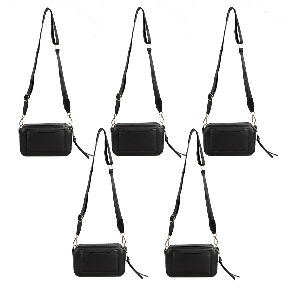 Contiene cinco mini bags de un mismo modelo en color negro.