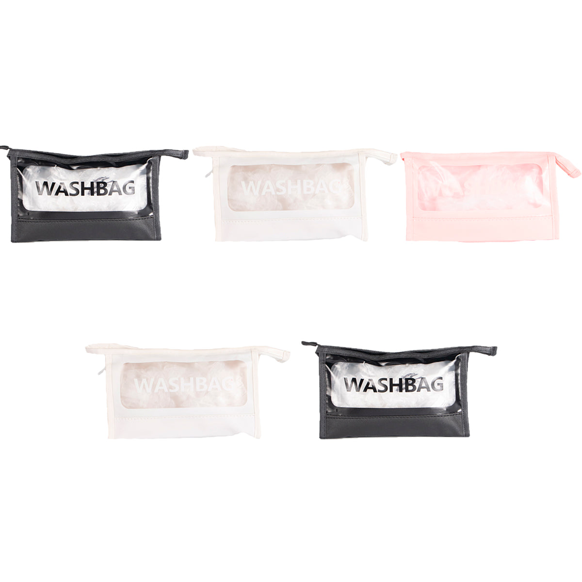 Contiene cinco portacosméticos Washbag de un mismo modelo en diferentes colores.