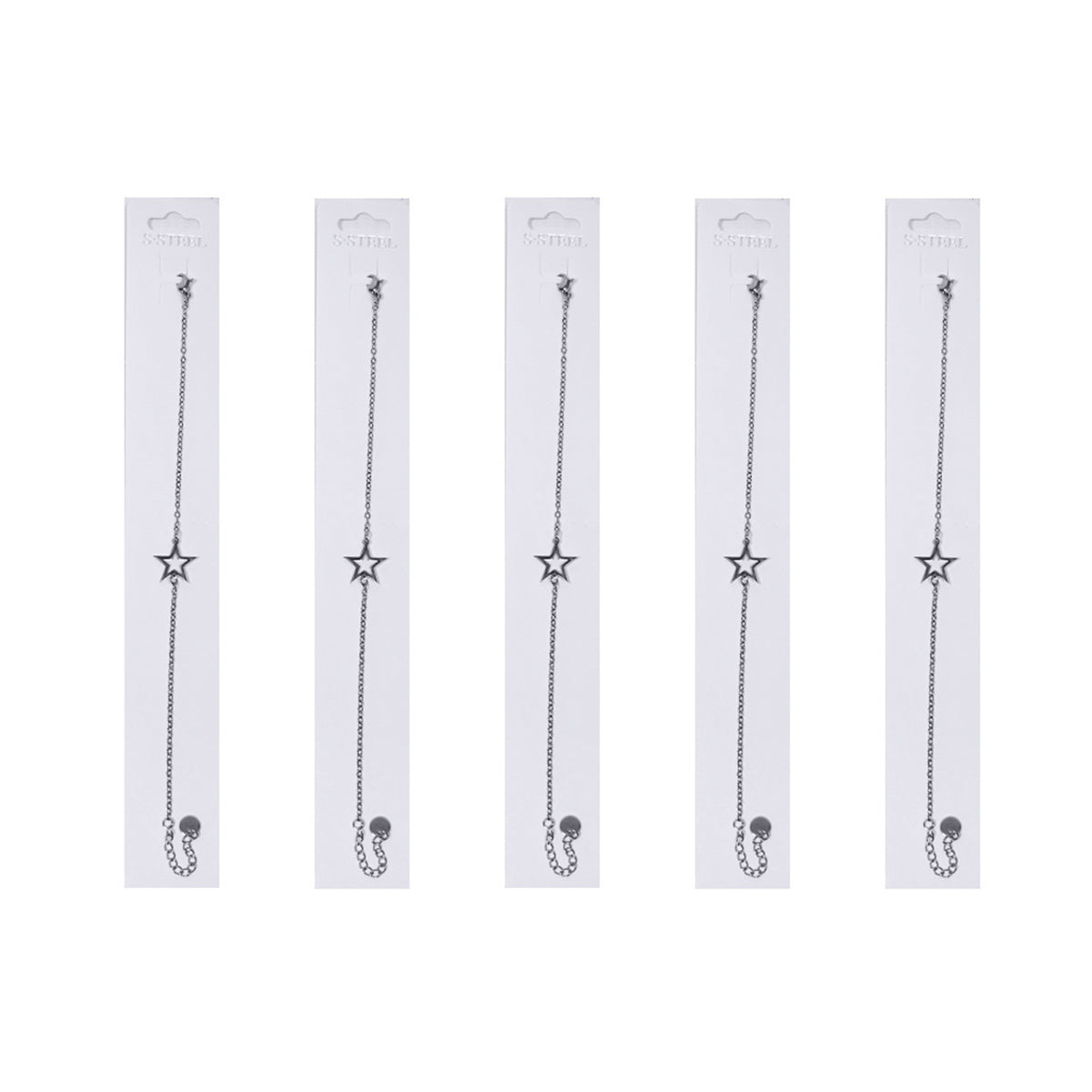 Contiene cinco pulseras plateadas de acero quirúrgico de un mismo modelos.