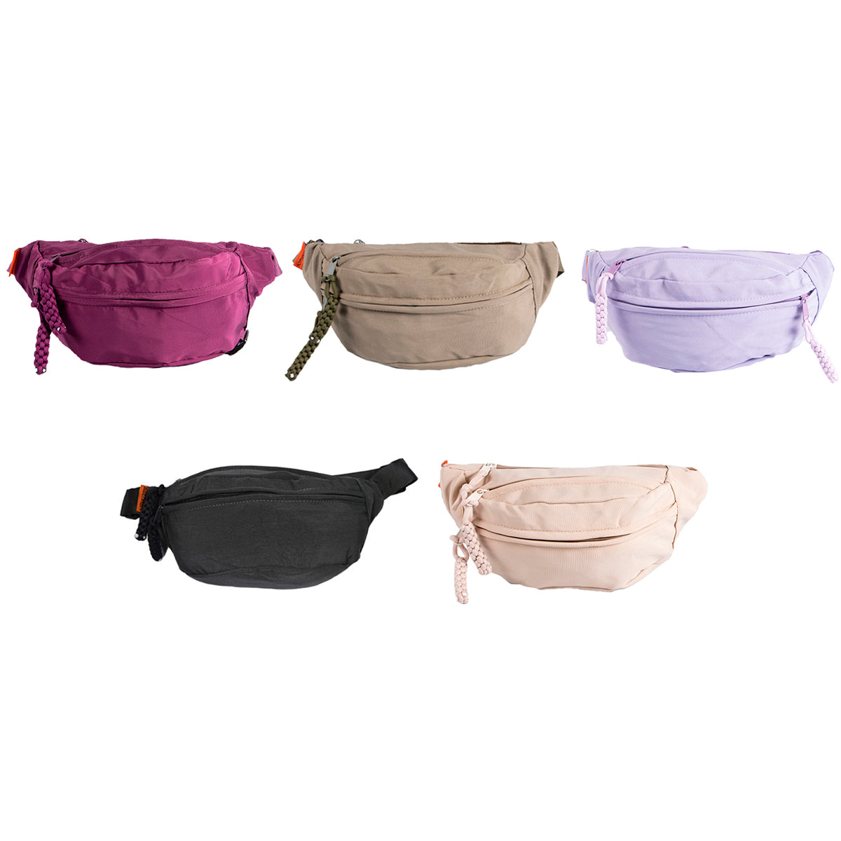 Contiene cinco riñoneras de un mismo modelo en diferentes colores.