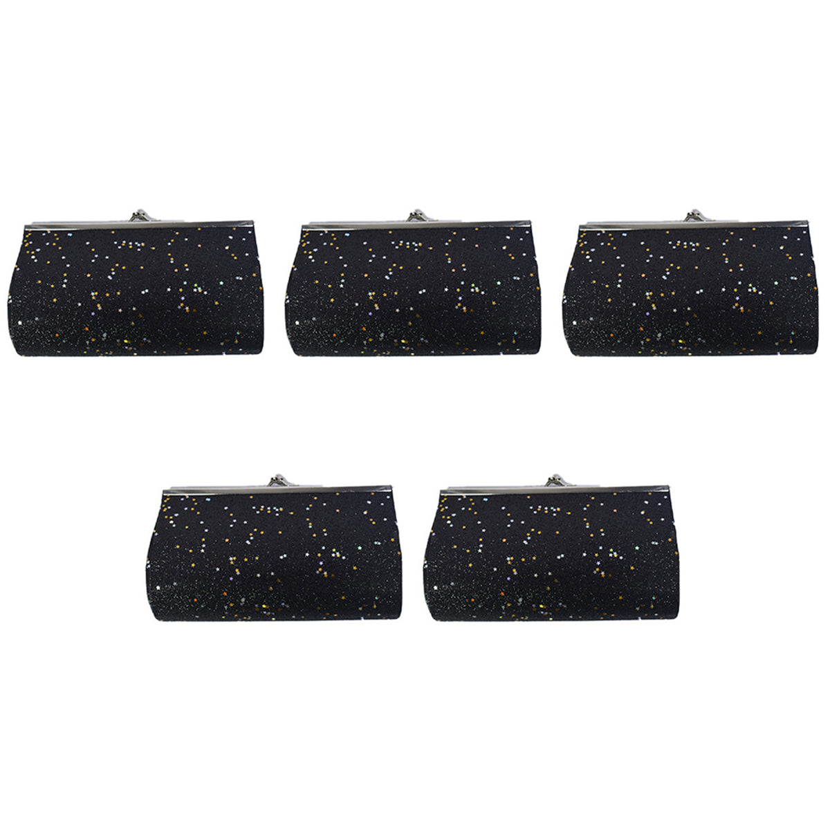 Contiene cinco sobres de fiesta con glitter en color negro.